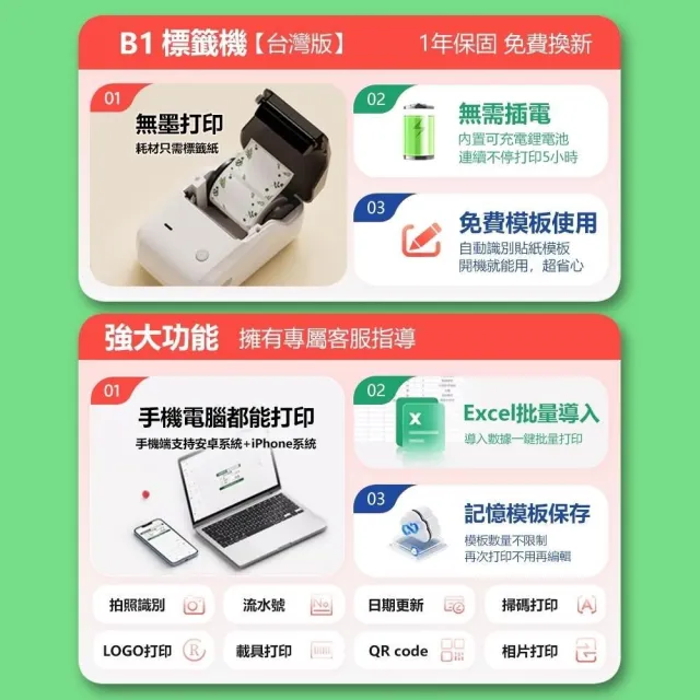 NIIMBOT 精臣標籤機 ✔️一年免費換新 精臣標籤機 B1 繁體中文版 商品標示 營養標示 姓名貼紙機 熱感應標籤 標籤貼紙機 貼紙機