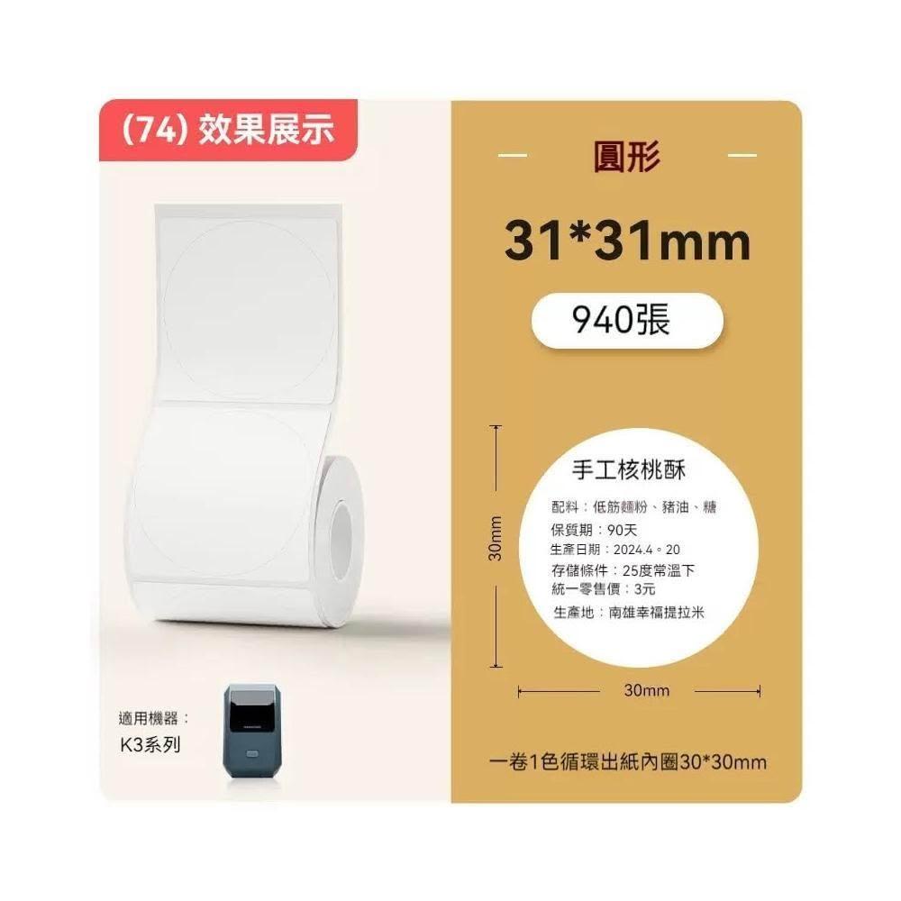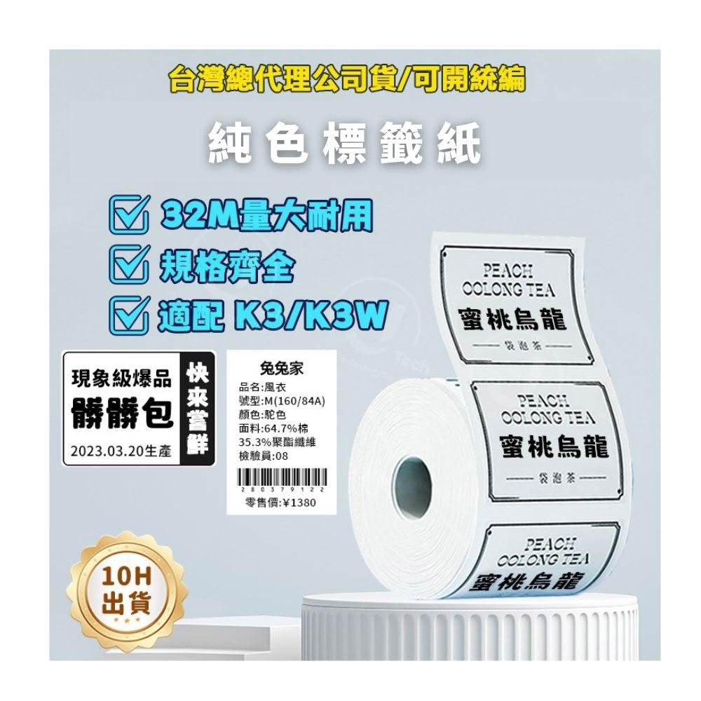 NIIMBOT 精臣精臣K3/K3W 服裝吊牌標籤 打印紙 四防純色透明熱敏紙 食品留樣標籤紙 冷凍二維碼 防水不乾膠條碼 彩色貼紙