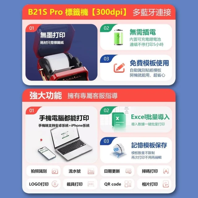 NIIMBOT 精臣台灣現貨 精臣標籤機 B21Pro 300dpi高清列印 標籤貼紙機 1年保固 標籤機 台灣繁體中文 B21S升級版