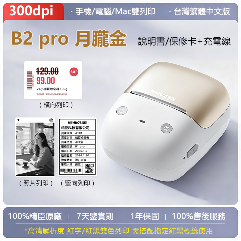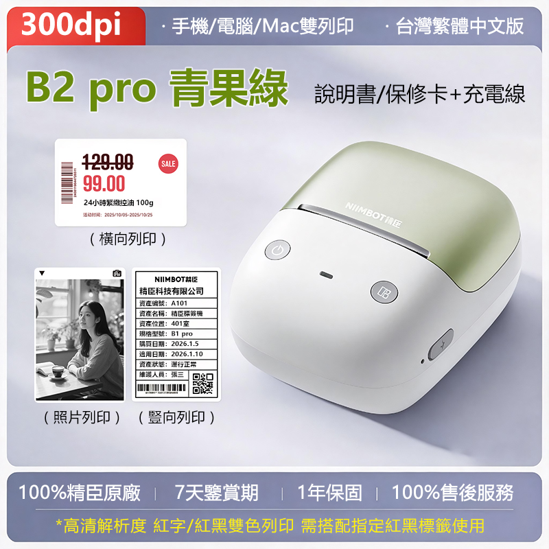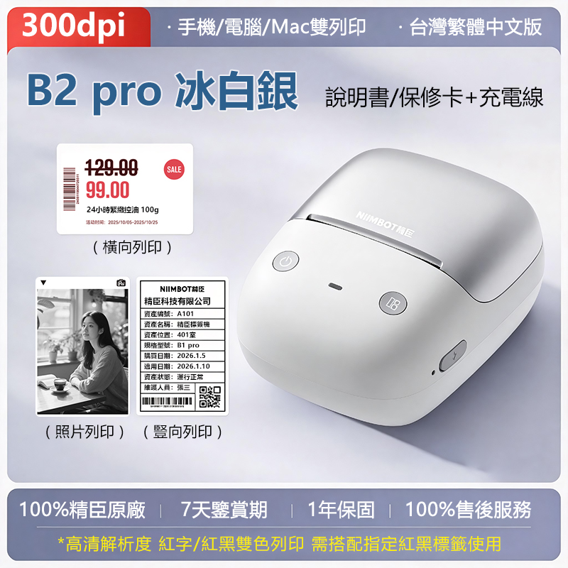 NIIMBOT 精臣精臣標籤機 B2pro 商用/家用 300dpi超高清版 標籤機 高清列印QR code/條碼/照片 台灣現貨 印表機