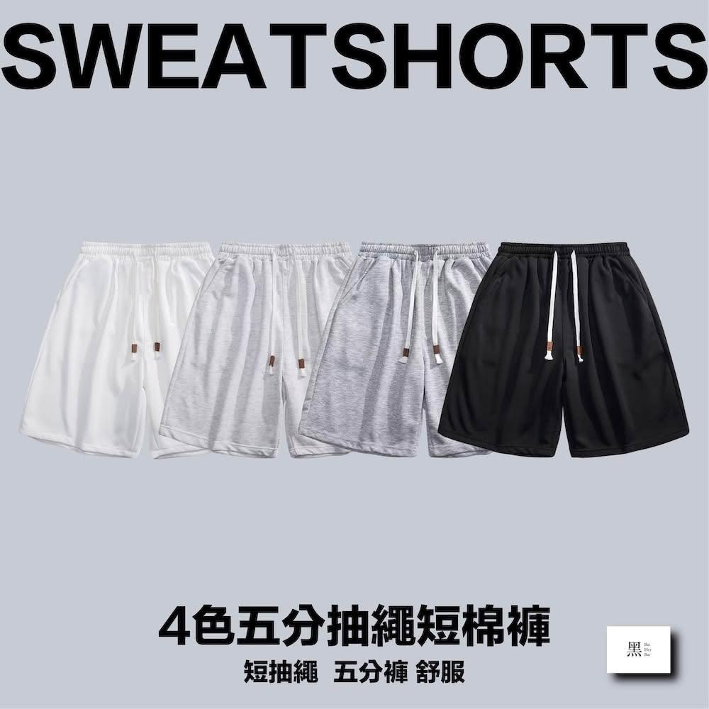 Bai Hey Bai 白黑白〔五分短棉褲〕灰色棉褲 台灣現貨 白色短棉褲 五分短褲 男生短褲 黑色短褲 抽繩短褲 休閒短褲