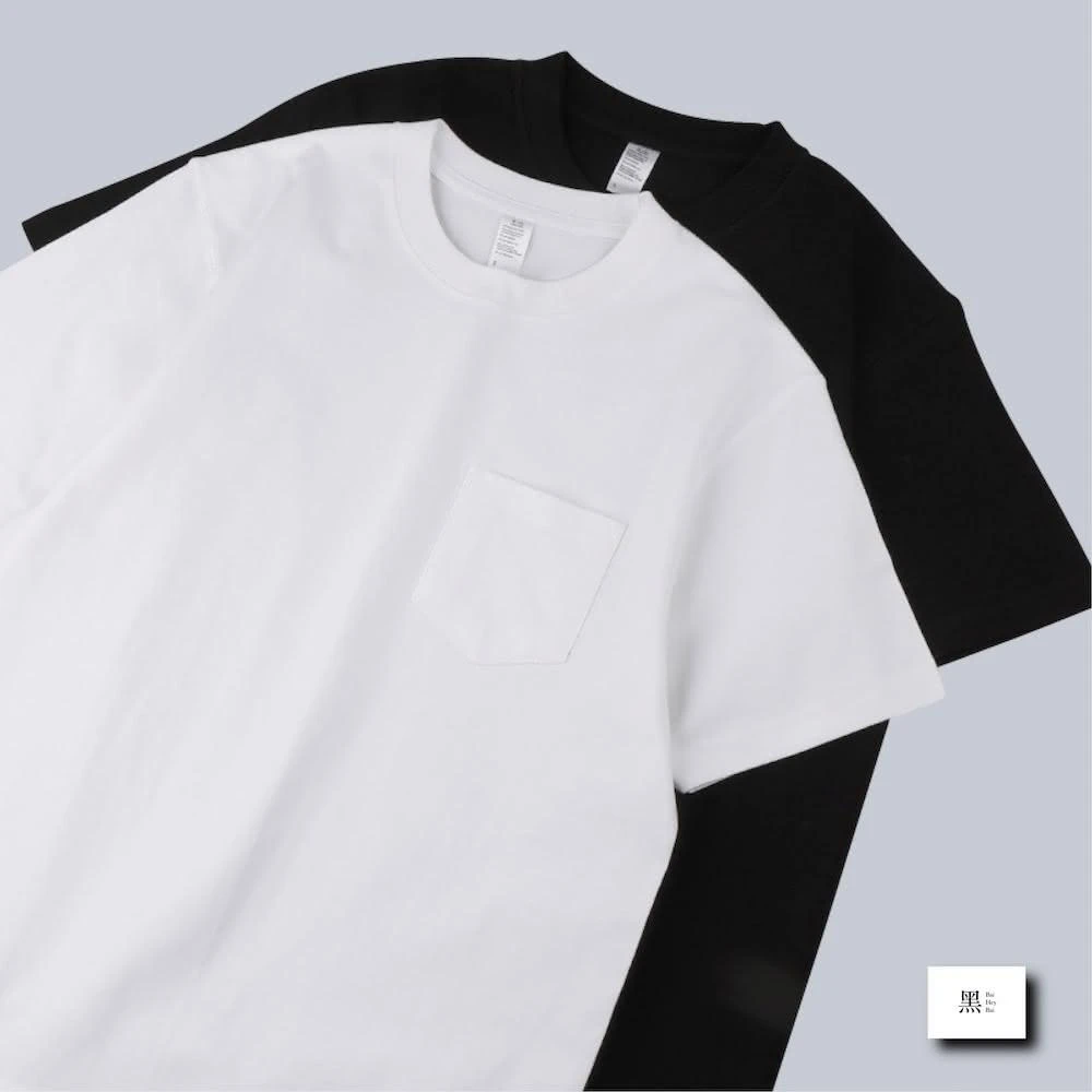 Bai Hey Bai 白黑白〔8oz精梳棉口袋重磅T〕口袋素T 口袋T恤 重磅口袋素T 男生素T 高磅棉T 不激凸 白色黑色素T短袖 口袋短袖 短t