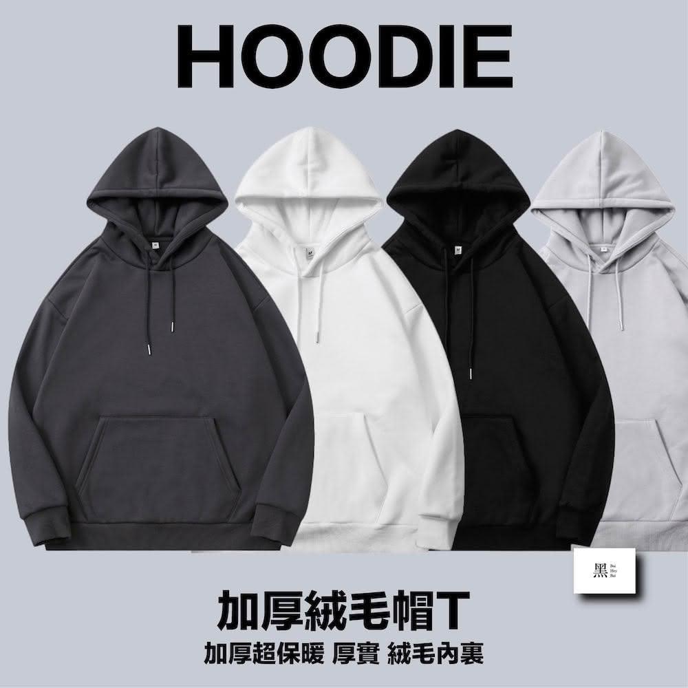 Bai Hey Bai 白黑白〔加厚絨毛帽T1.0〕絨毛帽T 素色帽T 男生帽T 女生帽T 黑色帽T 白色帽T 冬季帽T 連帽衛衣 防寒衛衣