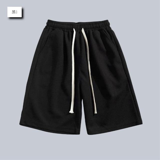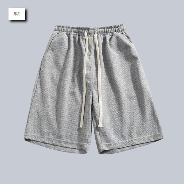 Bai Hey Bai 白黑白〔華夫格抽繩短褲〕台灣現貨 灰色棉褲 棉褲 短棉褲 華夫格褲 男生短褲 黑色短褲 抽繩短褲 休閒短褲 休閒褲 有開立發票