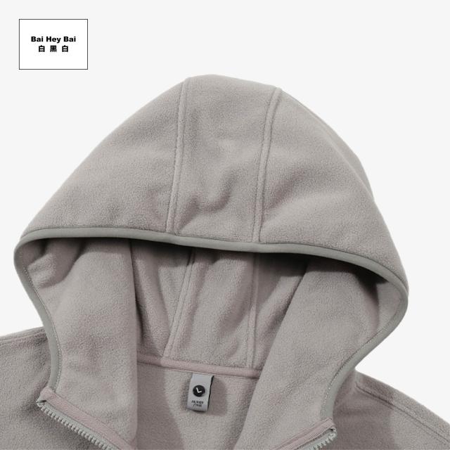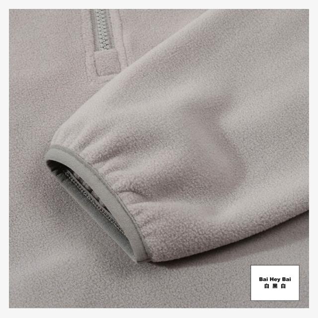 Bai Hey Bai 白黑白〔半開襟雙面絨帽T〕半開襟長 袖搖粒絨 絨毛帽T 素色帽T 男生帽T 女生帽T 黑色帽T 冬季帽T 連帽衛衣