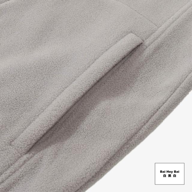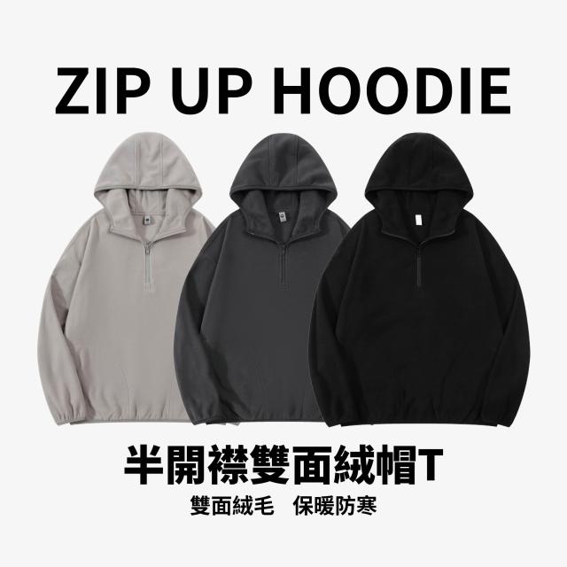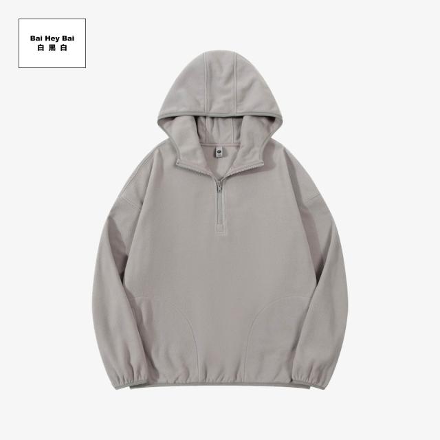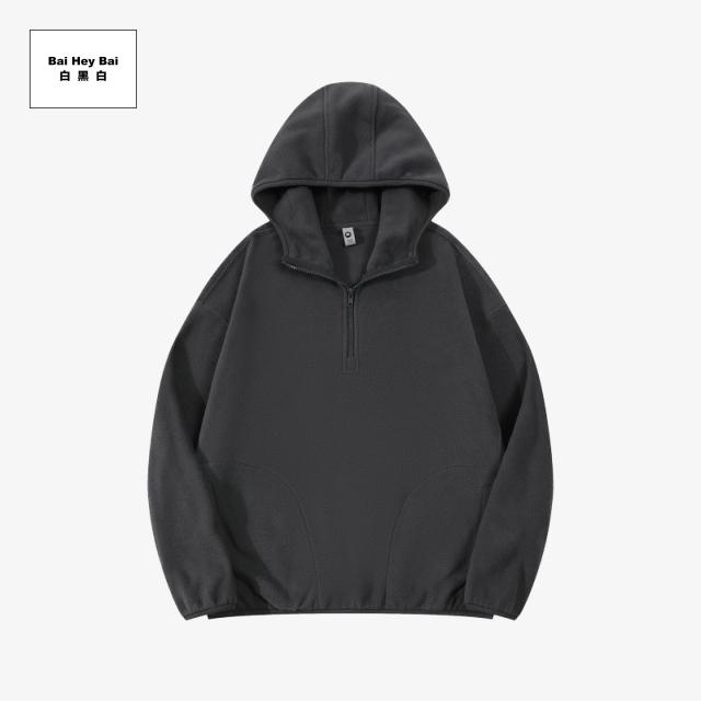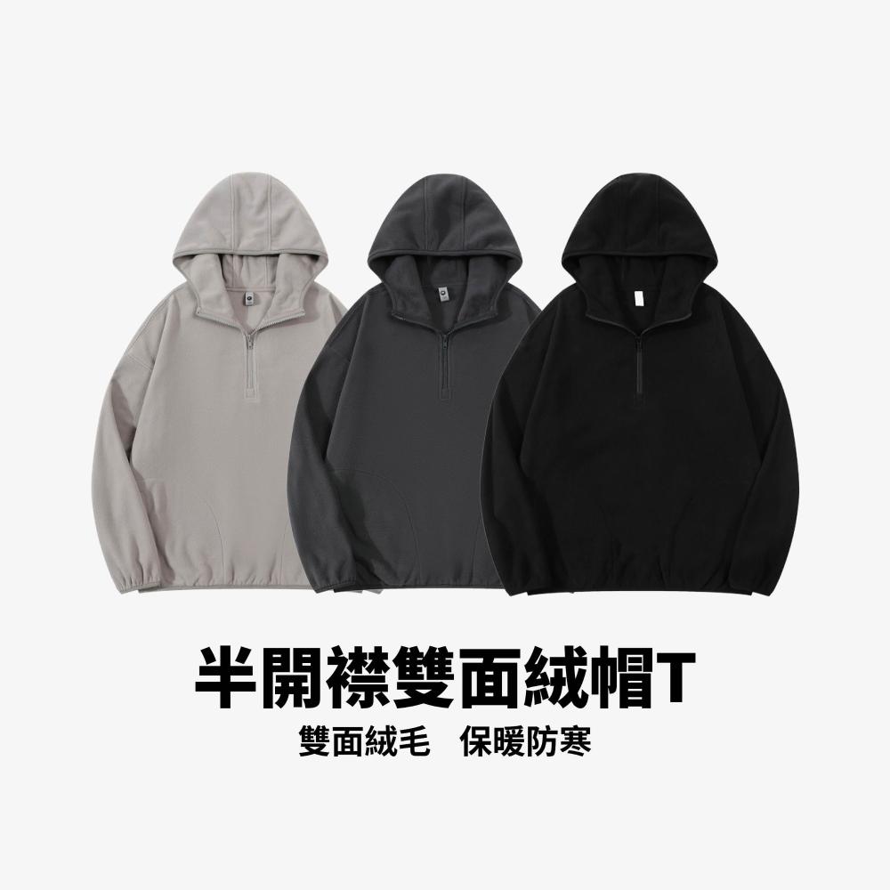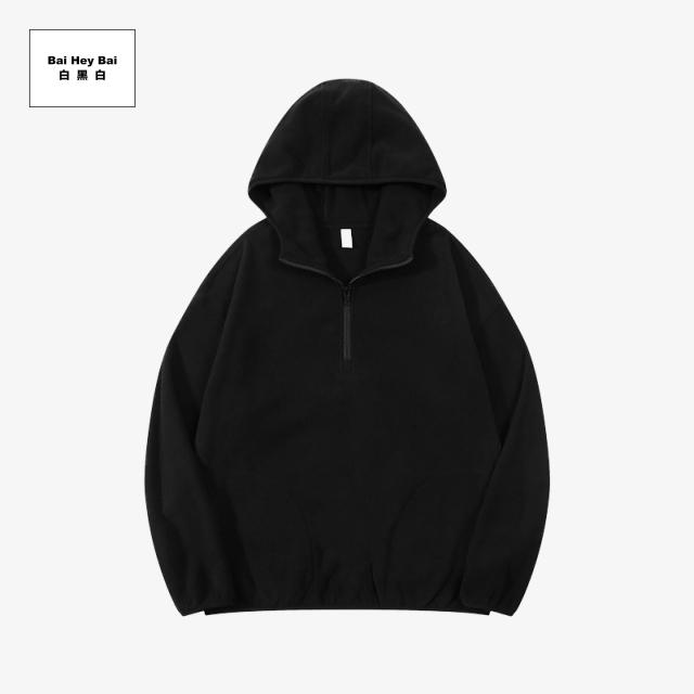 Bai Hey Bai 白黑白〔半開襟雙面絨帽T〕半開襟長 袖搖粒絨 絨毛帽T 素色帽T 男生帽T 女生帽T 黑色帽T 冬季帽T 連帽衛衣