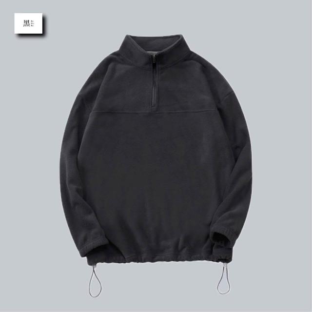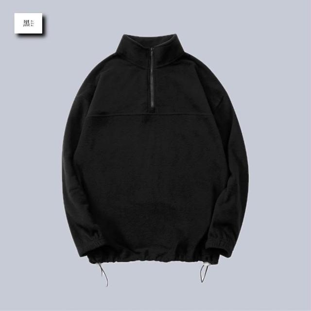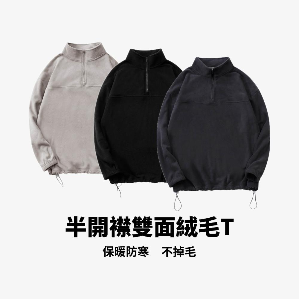 Bai Hey Bai 白黑白◼️半開襟雙面絨毛T◼️半開襟長袖 高領衛衣 立領長袖tee 搖粒絨 半拉鍊長袖 高領外套 黑色長袖 高領長袖 立領長袖
