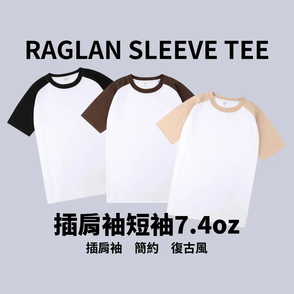 Bai Hey Bai 白黑白〔插肩袖短袖7.4oz〕素面插肩袖 撞色短袖 復古素T 拼接 美式 雙色 圓領T 男生素T 女生素T 素色T恤 重磅素t
