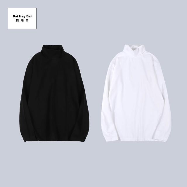 Bai Hey Bai 白黑白〔8oz高領長袖〕高領長袖 高領衛衣 立領長袖tee 翻領 內搭 打底衫 保暖衣 高領長袖 黑色長袖 保暖長袖 秋冬