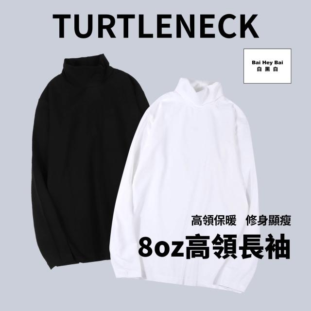 Bai Hey Bai 白黑白〔8oz高領長袖〕高領長袖 高領衛衣 立領長袖tee 翻領 內搭 打底衫 保暖衣 高領長袖 黑色長袖 保暖長袖 秋冬