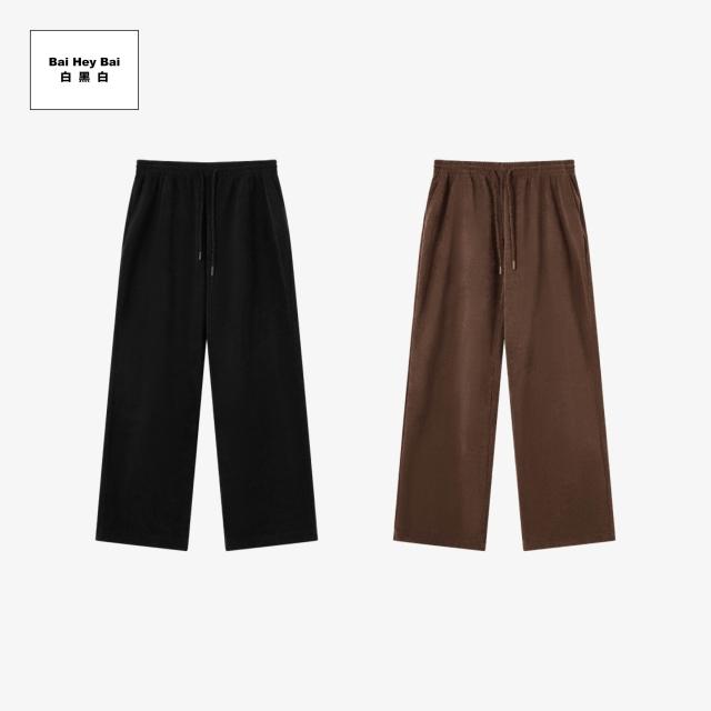 Bai Hey Bai 白黑白〔燈芯絨條紋長褲〕燈芯絨 直筒長褲 鬆緊抽繩 長褲 冬季長褲 保暖長褲 燈芯絨長褲 直筒 休閒長褲 男生長褲 台灣現貨