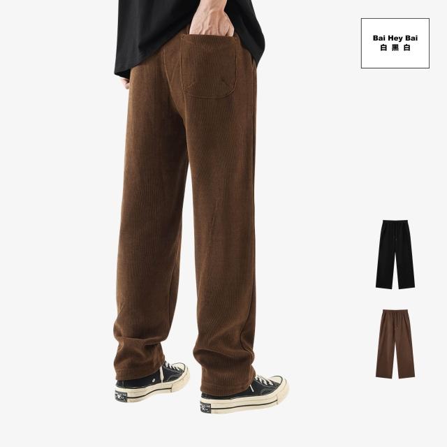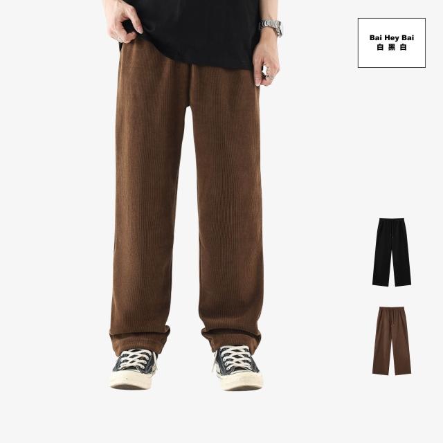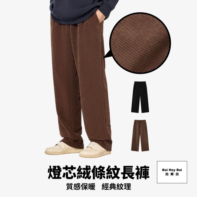 Bai Hey Bai 白黑白〔燈芯絨條紋長褲〕燈芯絨 直筒長褲 鬆緊抽繩 長褲 冬季長褲 保暖長褲 燈芯絨長褲 直筒 休閒長褲 男生長褲 台灣現貨