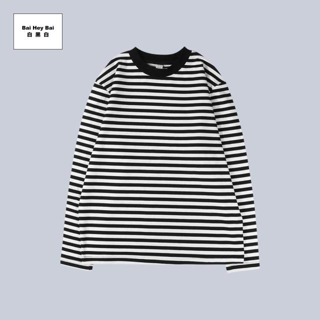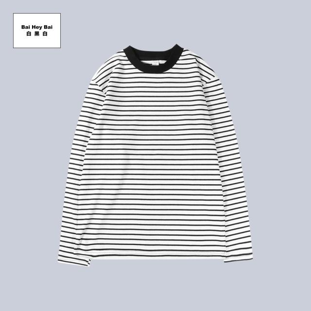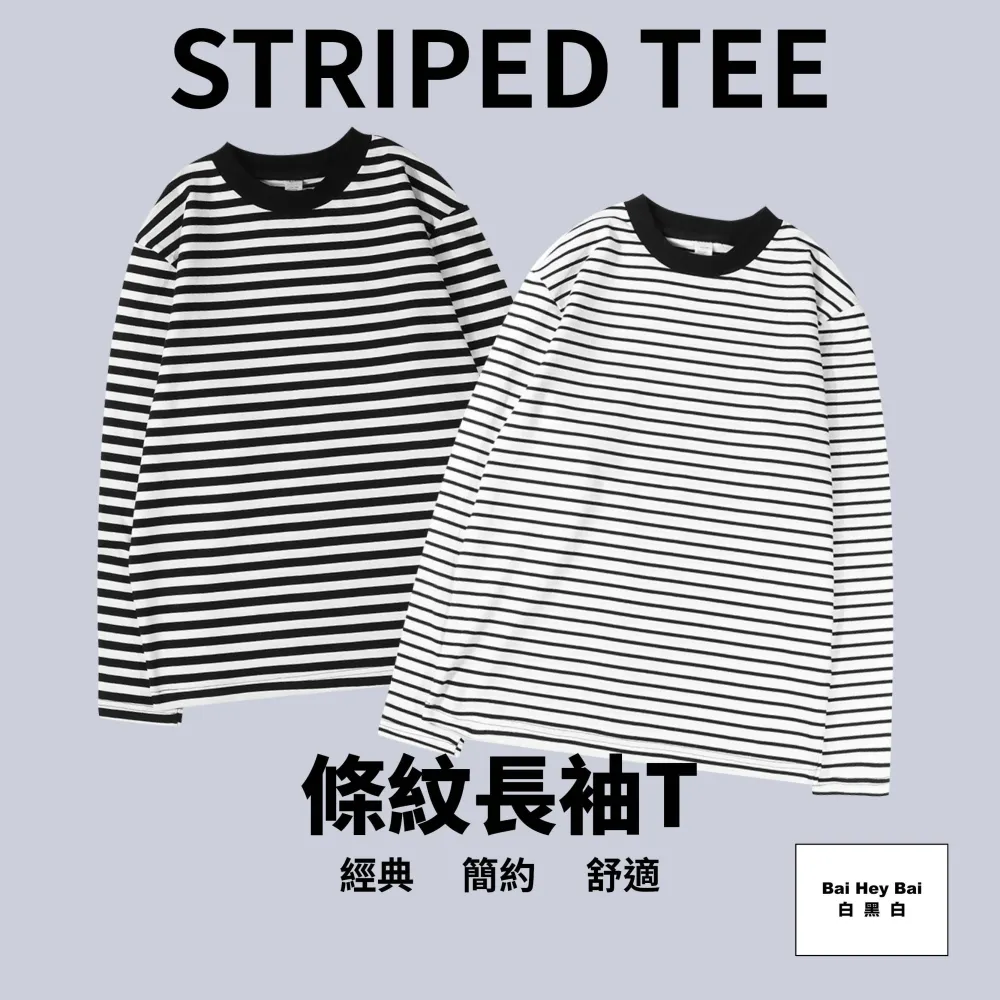 Bai Hey Bai 白黑白〔條紋長袖T〕經典條紋 黑白 簡約 細黑條紋 條紋T 線條長袖 橫條紋 T恤 百搭 長袖T 長袖上衣 圓領T 情侶T