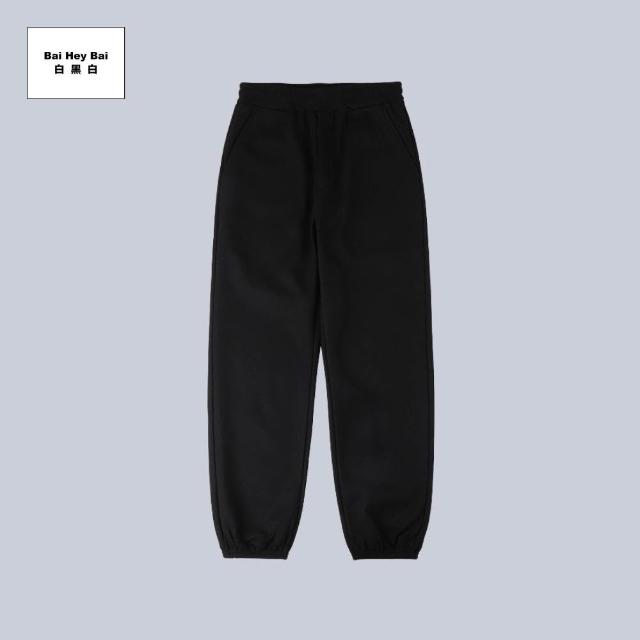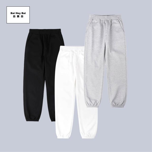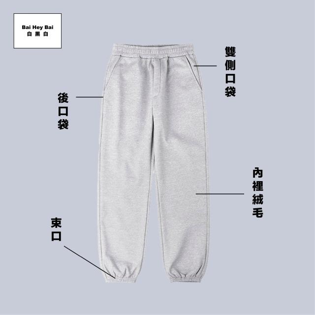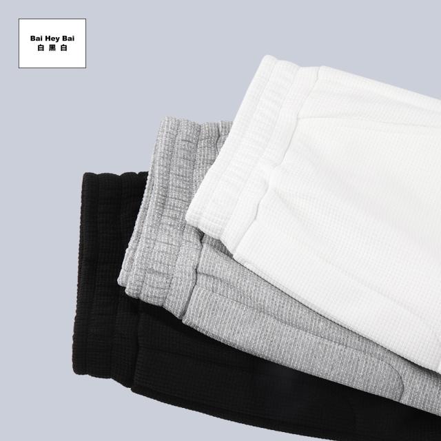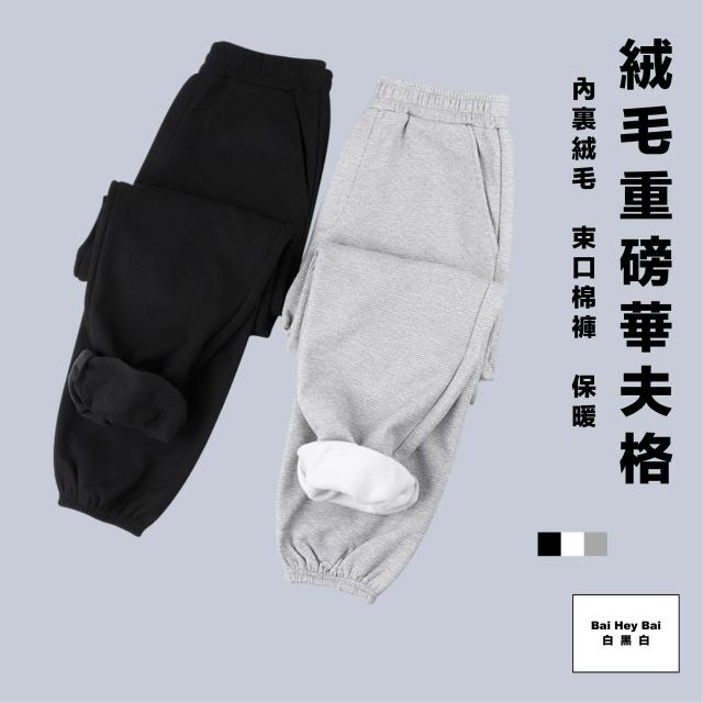 Bai Hey Bai 白黑白〔絨毛重磅華夫格長褲〕華夫格 保暖棉褲 內裡絨毛 重磅 縮口褲 長棉褲 休閒棉褲 男生長褲 黑色棉褲 束口長褲 刷毛衛褲