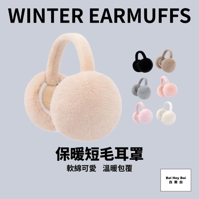 Bai Hey Bai 白黑白〔保暖短毛耳罩〕保暖耳罩 毛絨耳罩 仿兔貂毛 毛毛耳罩 冬天耳罩 防寒耳罩 折疊耳罩 抗寒 禦寒 保暖 耳罩女 台灣現貨