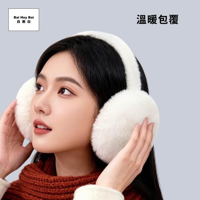 Bai Hey Bai 白黑白〔保暖長毛耳罩〕保暖耳罩 毛絨耳罩 仿兔貂毛 毛毛耳罩 冬天耳罩 防寒耳罩 折疊耳罩 抗寒 禦寒 保暖 耳罩女 台灣現貨