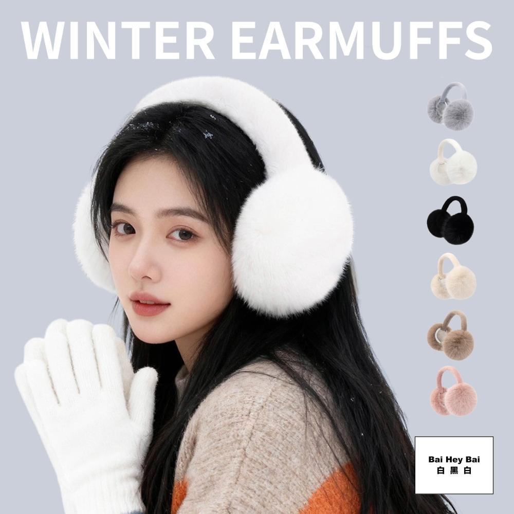 Bai Hey Bai 白黑白〔保暖長毛耳罩〕保暖耳罩 毛絨耳罩 仿兔貂毛 毛毛耳罩 冬天耳罩 防寒耳罩 折疊耳罩 抗寒 禦寒 保暖 耳罩女 台灣現貨
