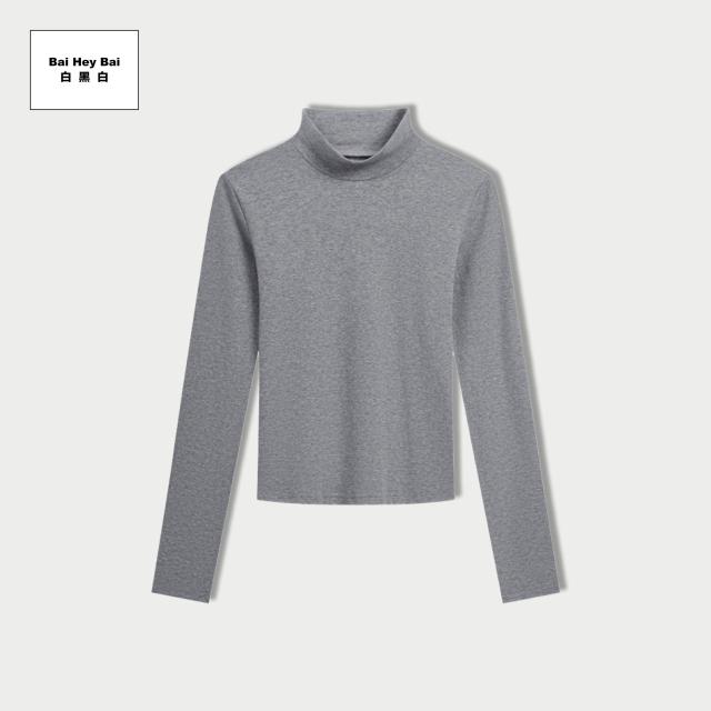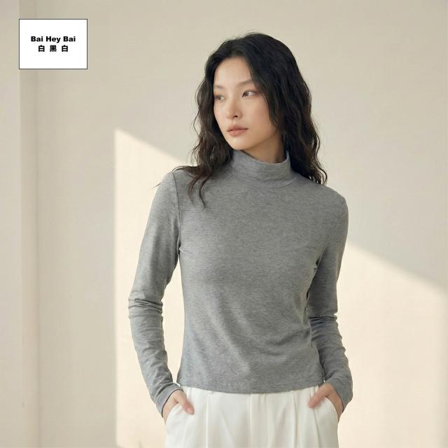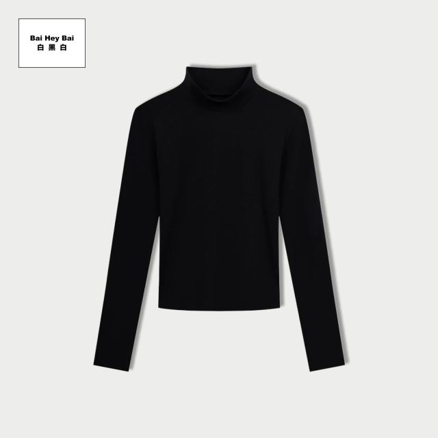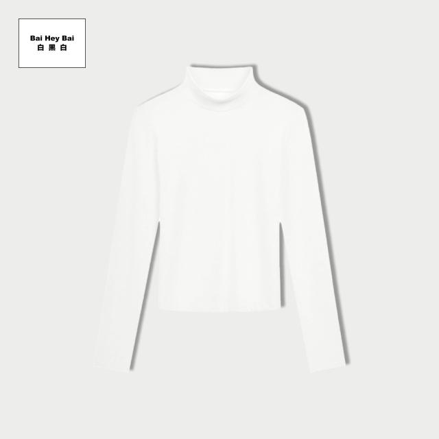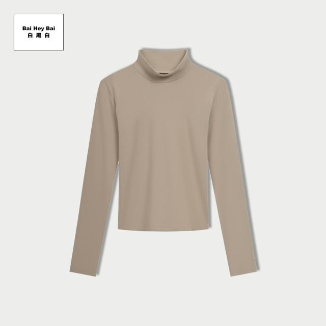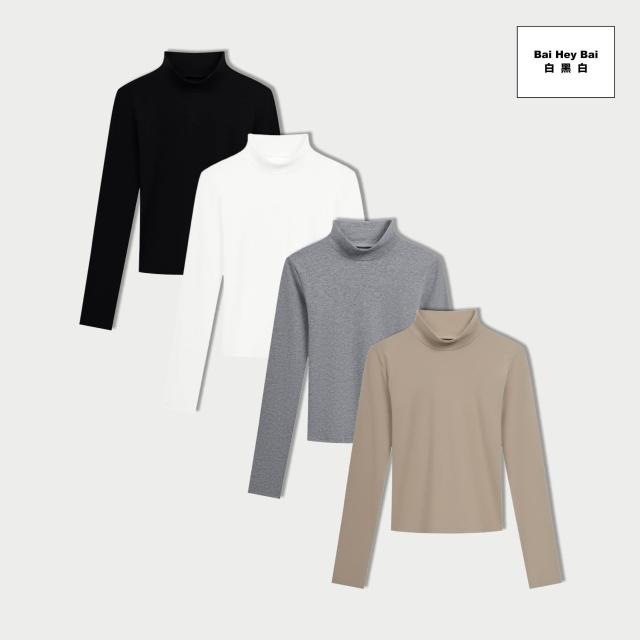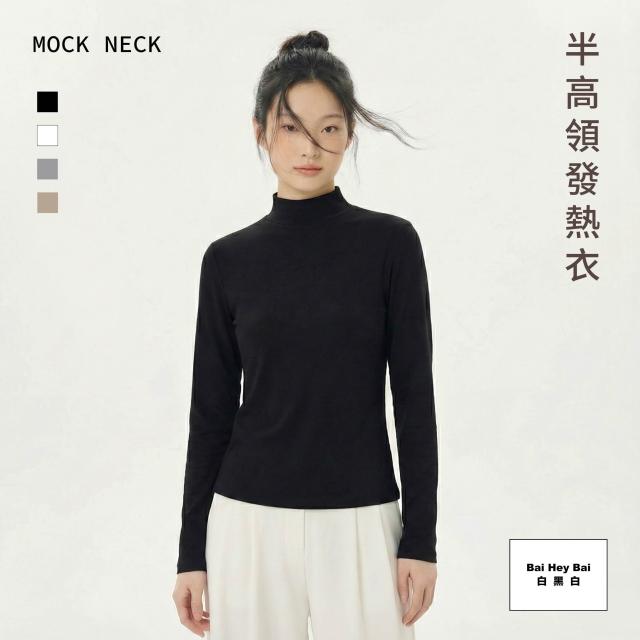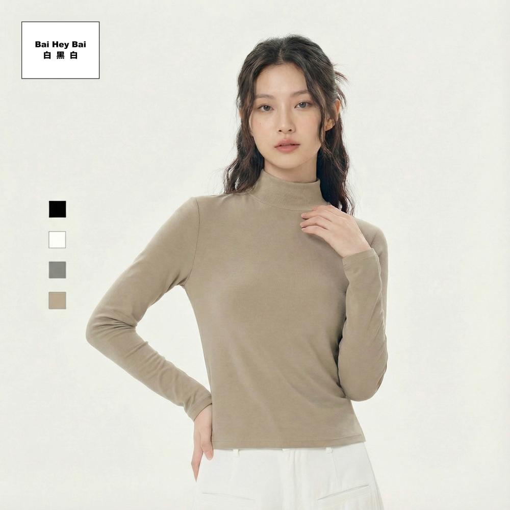 Bai Hey Bai 白黑白〔半高領女發熱衣〕女款發熱衣 長袖高領 保暖上衣 修身顯瘦 高領 長袖 彈性 合身 黑色保暖 女裝上衣 秋冬簡約素色