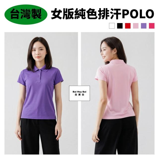 Bai Hey Bai 白黑白MIT台灣製〔女版純色排汗POLO〕POLO衫 女版短袖POLO 高效吸濕排汗 商務休閒 修身 素色POLO 大尺碼