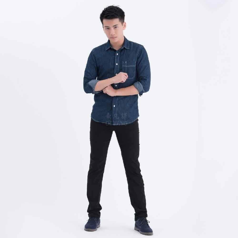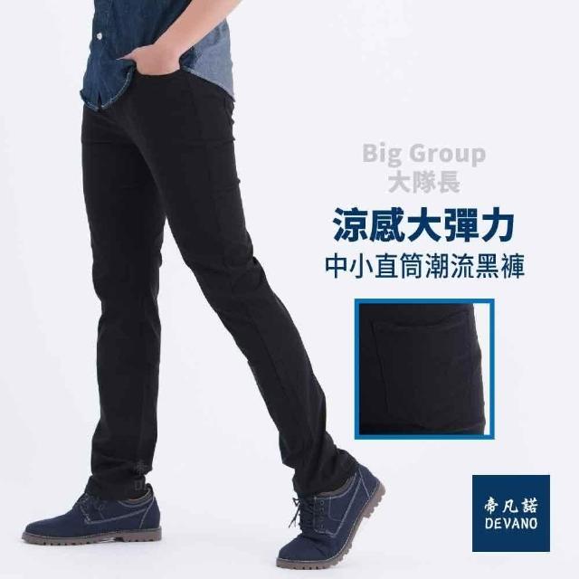 BIG GROUP 涼感大彈力中小直筒潮流黑褲 大隊長牛仔褲、台灣製、黑色 吸濕排汗 簡約時尚