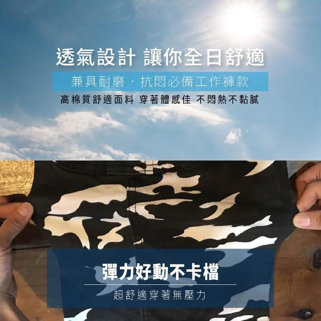 重磅迷彩多口袋 彈性厚實休閒工作褲-迷彩黑/迷彩綠