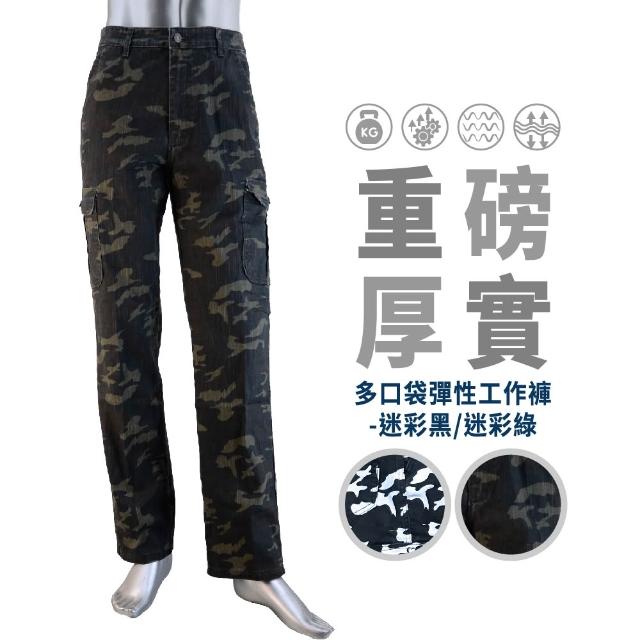 重磅迷彩多口袋 彈性厚實休閒工作褲-迷彩黑/迷彩綠