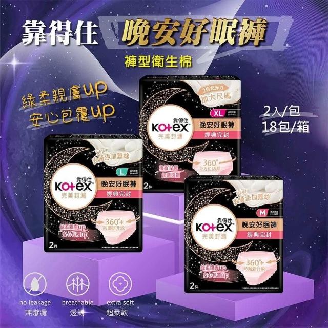 Kotex 靠得住靠得住Kotex 箱購 晚安好眠褲 2入*18包 M/L/XL號