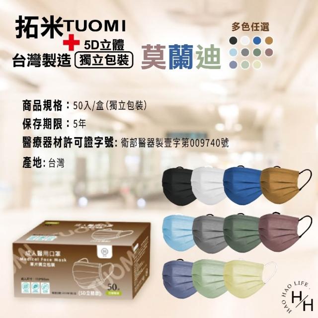 拓米 5D獨立包裝醫療級口罩50入/盒 成人平面口罩 莫蘭迪色系 多色任選
