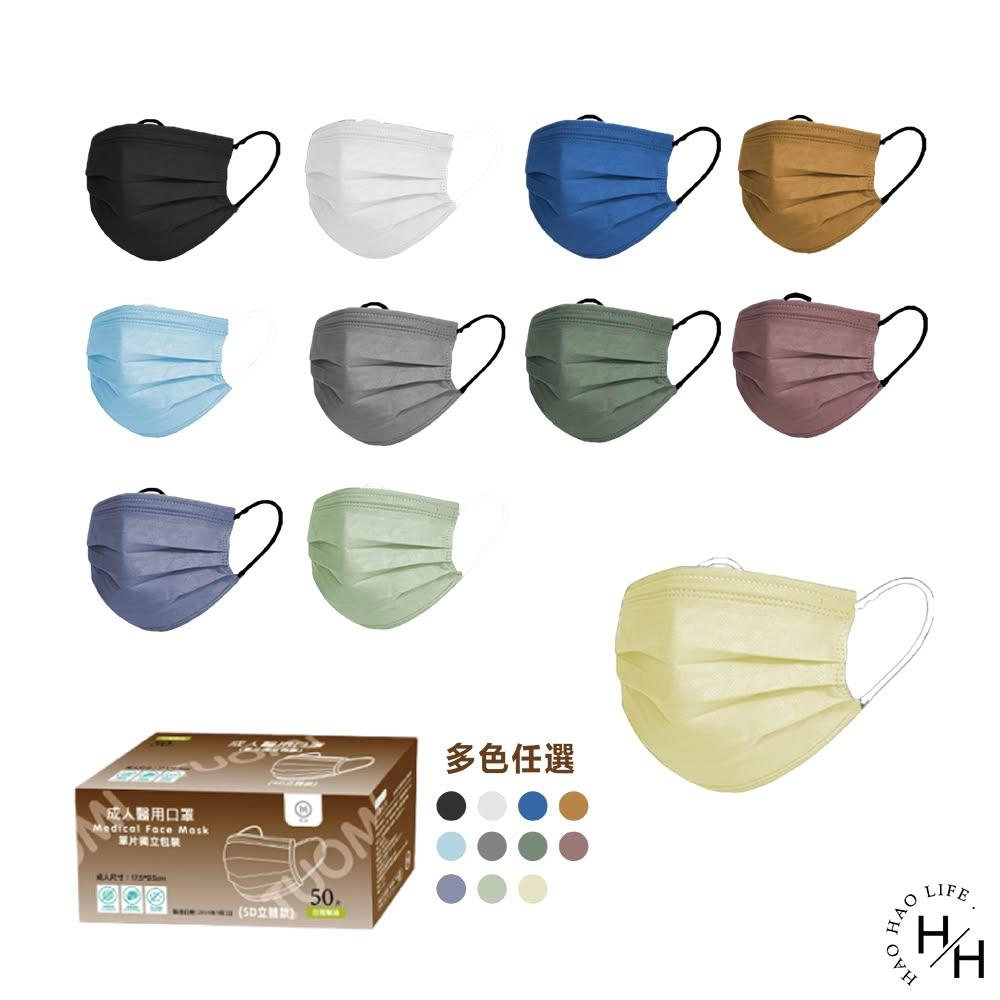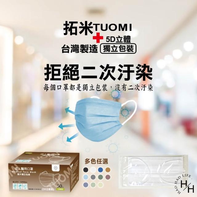 拓米 5D獨立包裝醫療級口罩50入/盒 成人平面口罩 莫蘭迪色系 多色任選