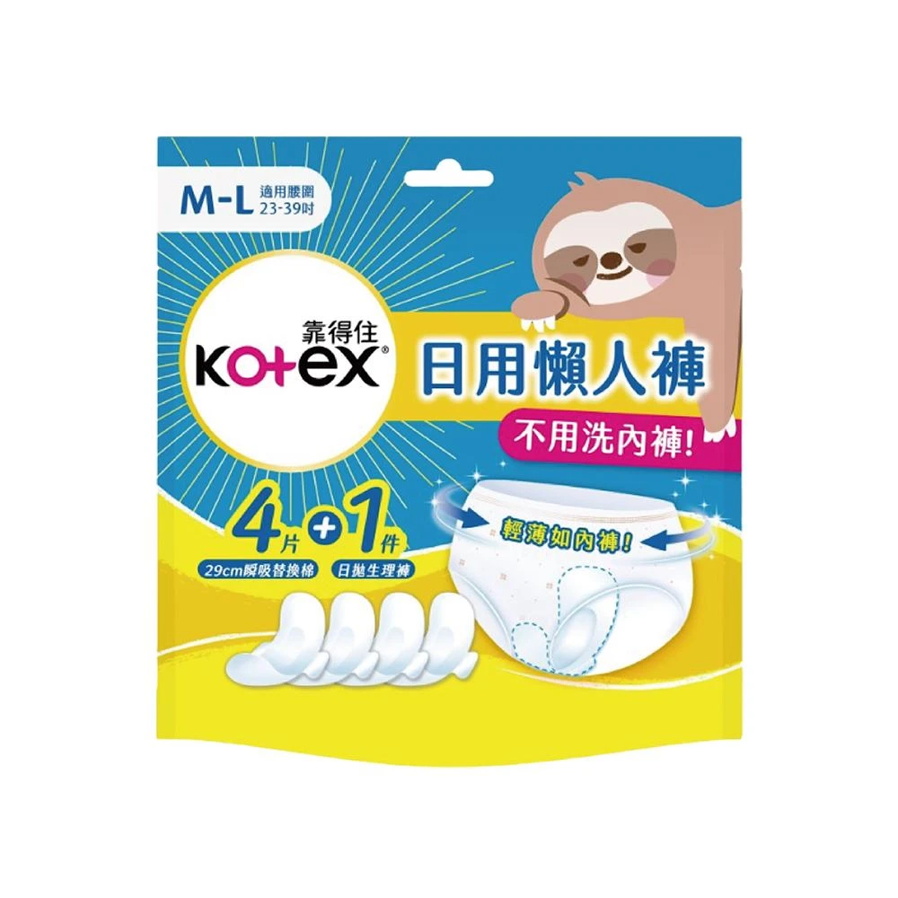 Kotex 靠得住日用懶人褲褲型衛生棉 M-L( 1褲+4替換片 x 14包 )
