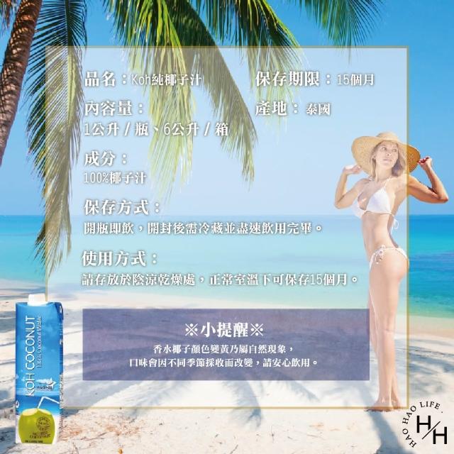 KOH COCONUT 酷椰嶼純椰子汁 1公升 x 6入/箱