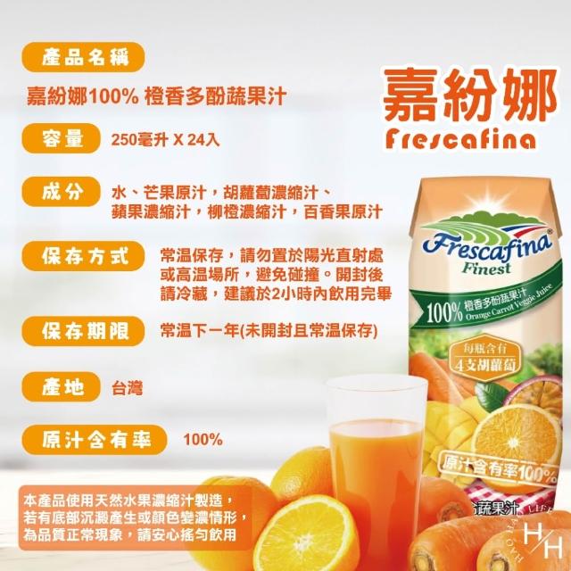 嘉紛娜100% 橙香多酚蔬果汁 (250毫升x24入/箱)
