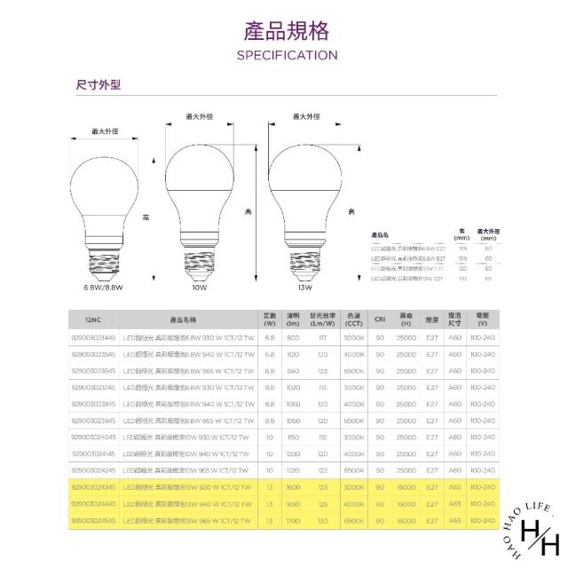 Philips 飛利浦單入組-超極光真彩版 13W LED燈泡(3色任選)