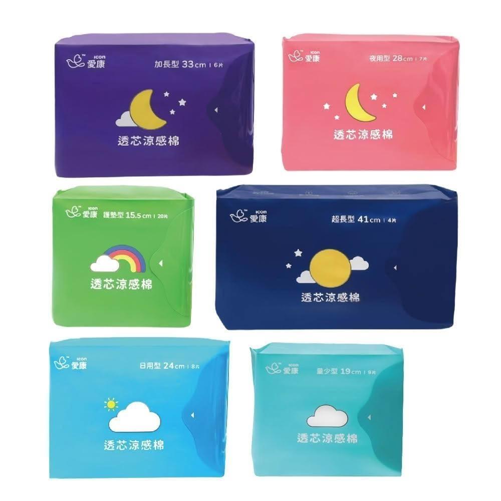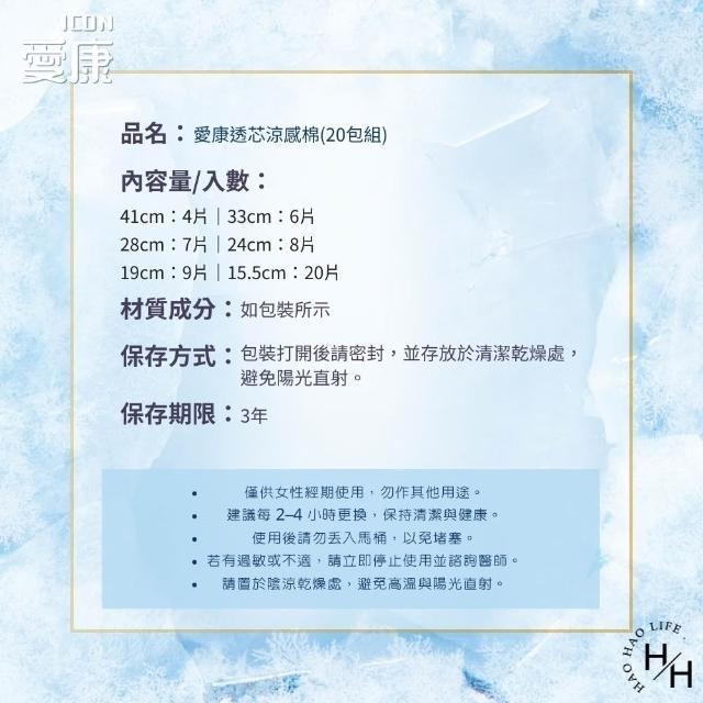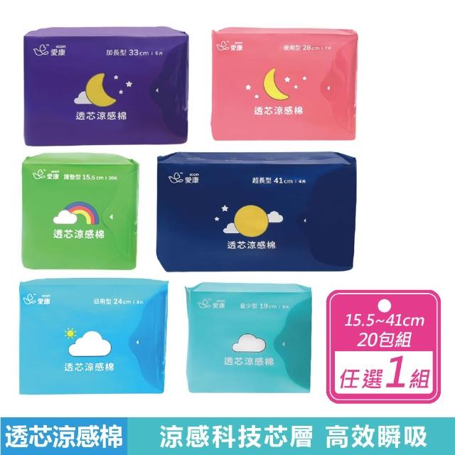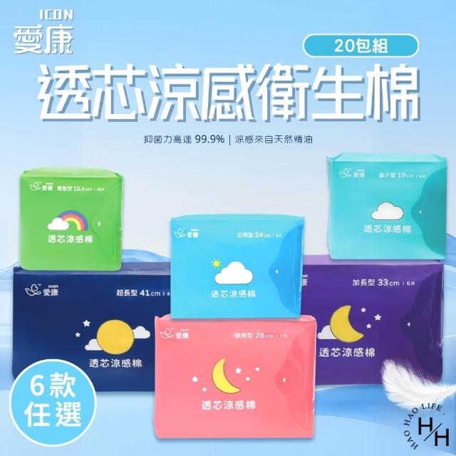 愛康20包組-透芯涼感棉 日用/夜用/夜用加長/量少/超長/護墊 衛生棉 多款任選