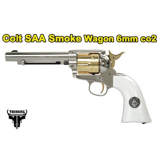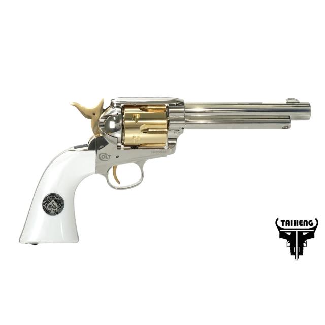翔準AOG Colt SAA Smoke Wagon 6mm co2 動力 金屬 鍍金銀 左輪 金色加白色握把