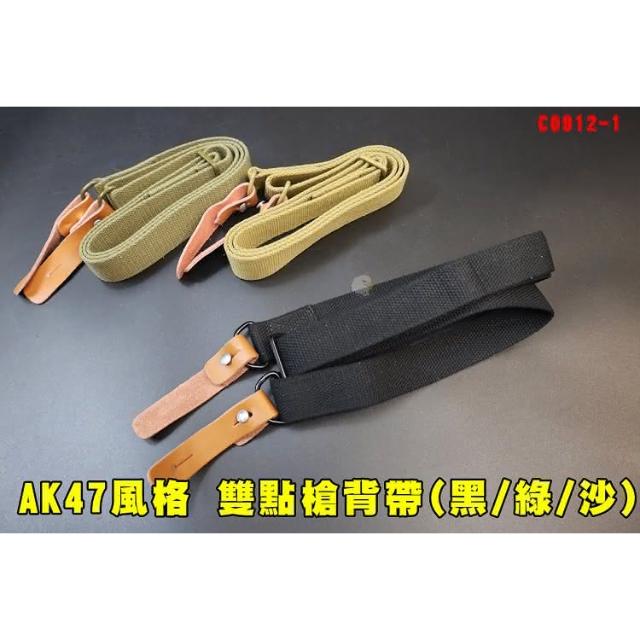 翔準AOG AK47風格 雙點槍背帶 (黑/綠/沙) 牛皮帶 C0912-1 真皮尼龍帆布槍背帶 戰術 槍繩戰術背帶繩