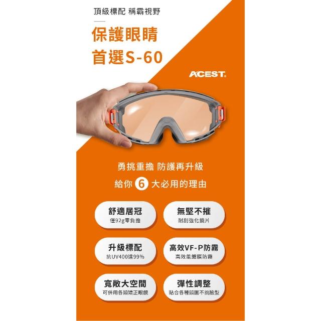 臺製 ACEST S-60 護目鏡 全密閉 護目鏡 耐刮防霧 可併用眼鏡口罩 防護眼鏡 工安 實驗 首創可替換頭