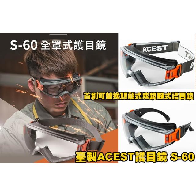 臺製 ACEST S-60 護目鏡 全密閉 護目鏡 耐刮防霧 可併用眼鏡口罩 防護眼鏡 工安 實驗 首創可替換頭