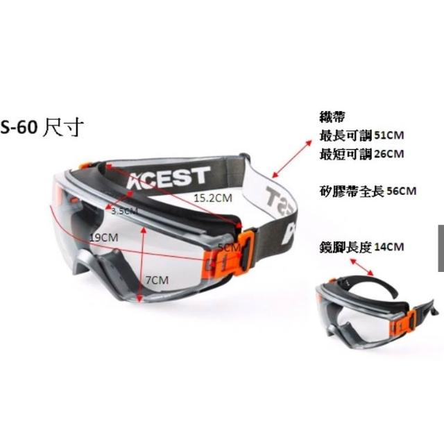 臺製 ACEST S-60 護目鏡 全密閉 護目鏡 耐刮防霧 可併用眼鏡口罩 防護眼鏡 工安 實驗 首創可替換頭