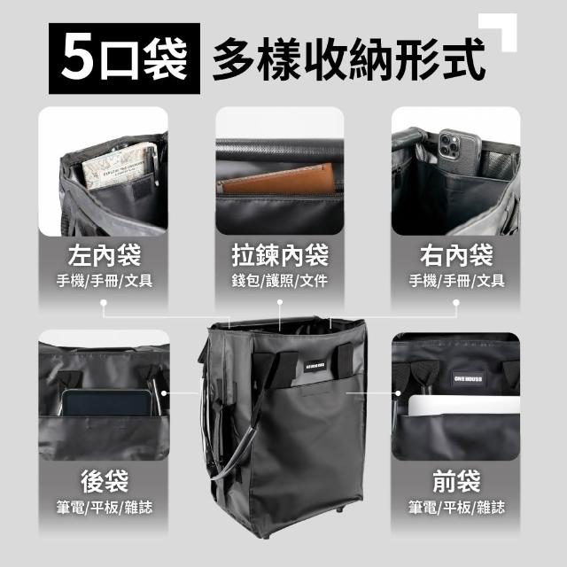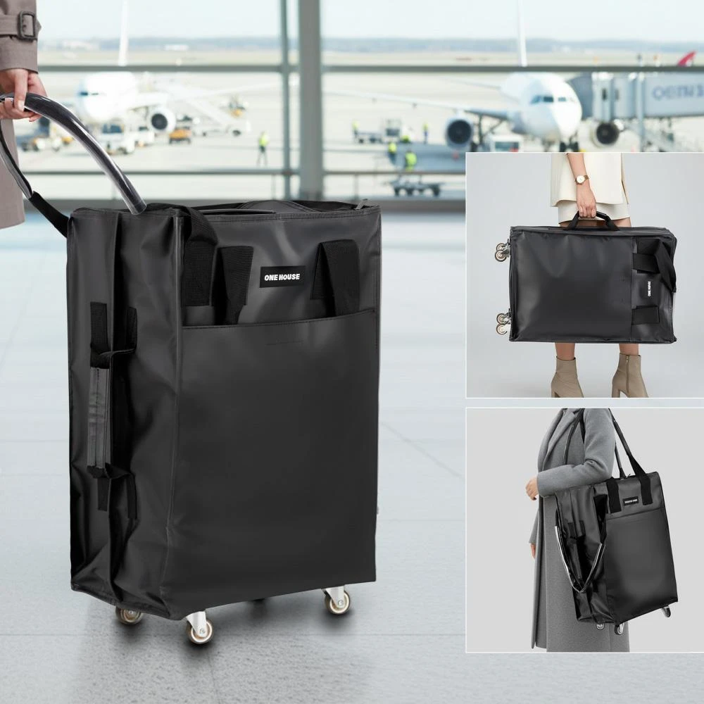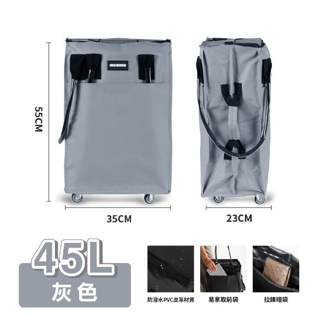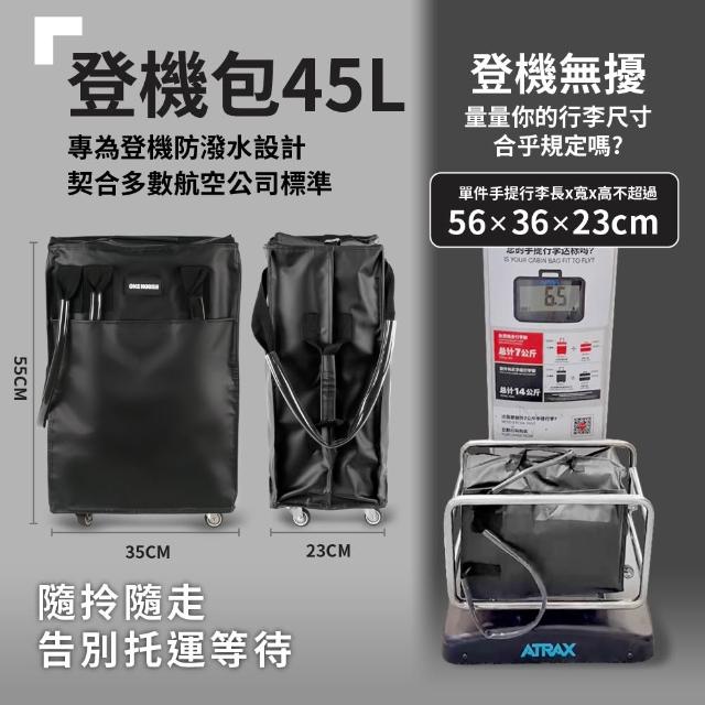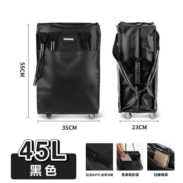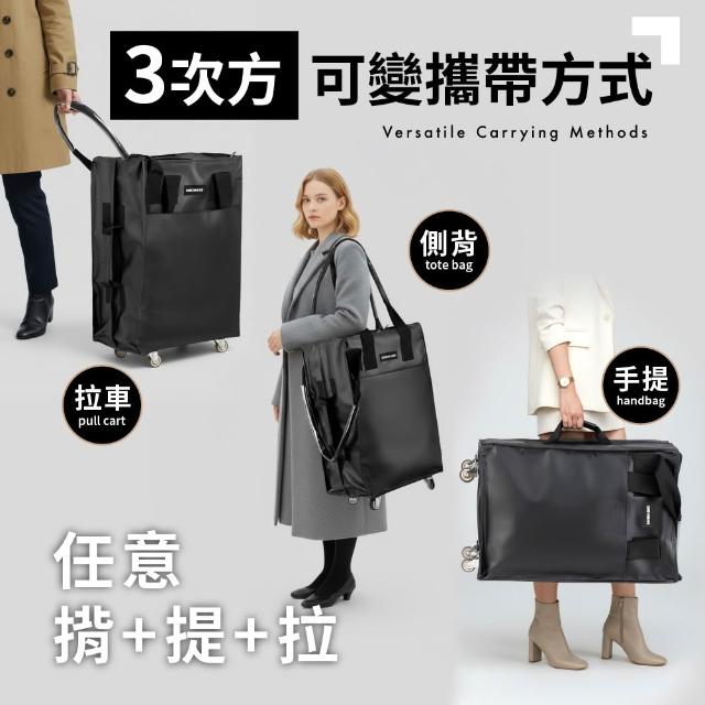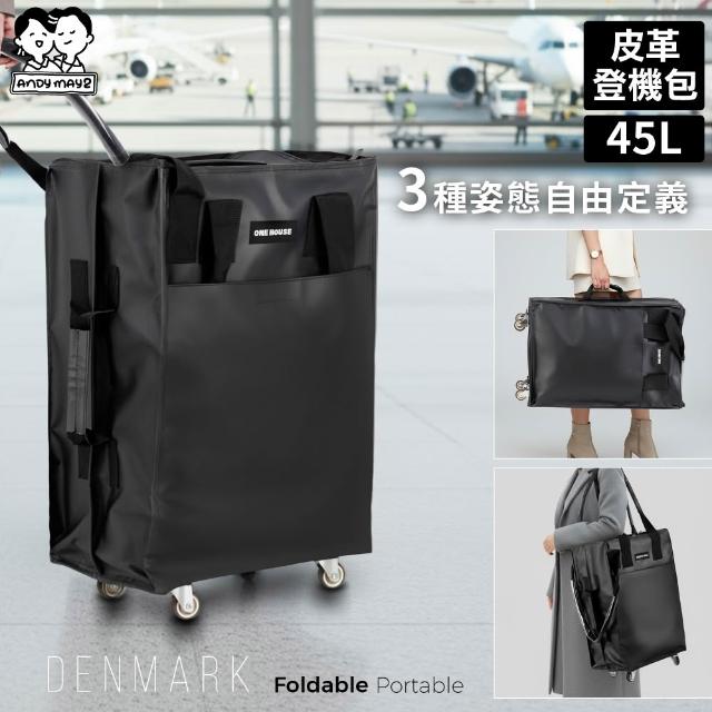 ANDYMAY2全新升級 45L丹邁多輪防水收納登機包-3in1手把皮革款(購物車 收納車 旅行包 登機箱 收納袋 買菜車)