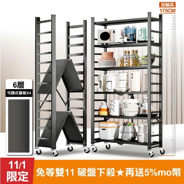 ANDYMAY270寬六層免組裝折疊收納層架 收納櫃 收納用品 廚房收納櫃