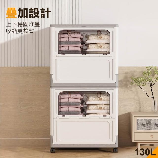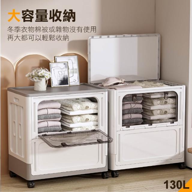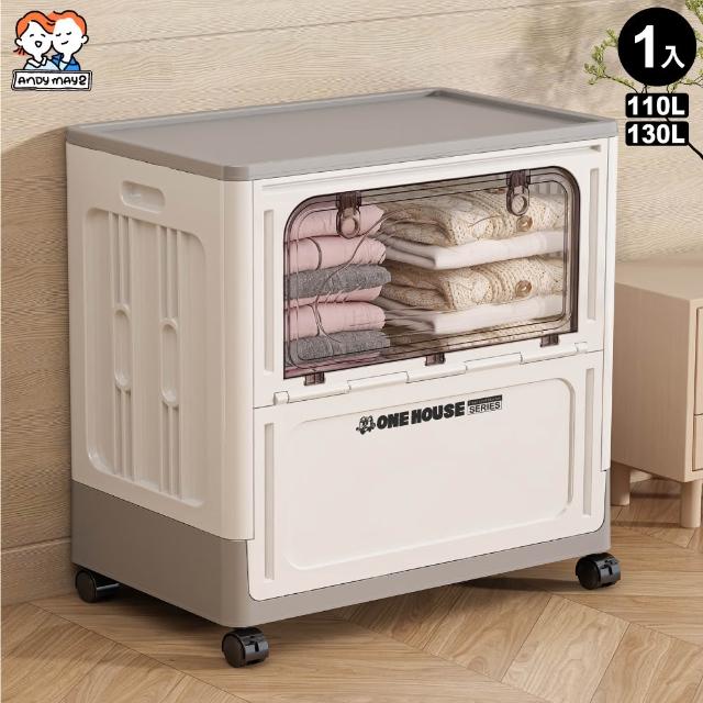 ANDYMAY2大容量側開附輪大丹尼收納箱/收納櫃-110L/130L-規格任選(免安裝置物箱 衣物收納 摺疊收納箱 交換禮物)
