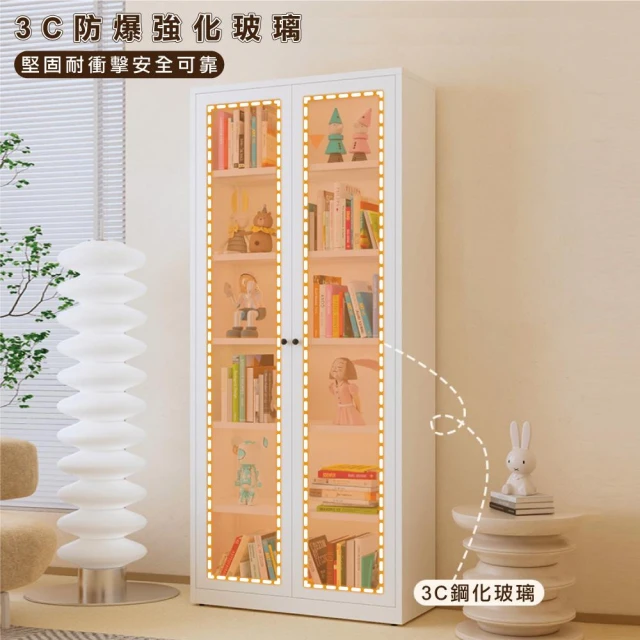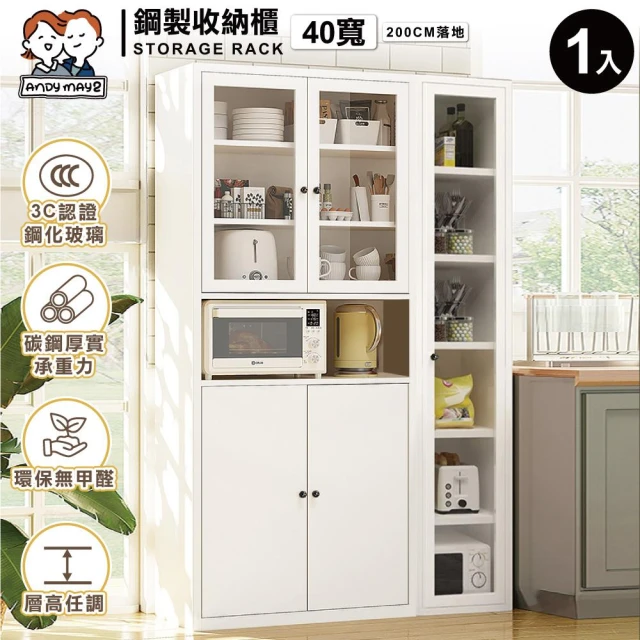 ANDYMAY2落地單門款_鋼鐵職人全碳鋼簡約耐重收納櫃 40X35X200CM(鋼化玻璃櫃門 展示櫃 書櫃 活動櫃 收納櫃 鐵櫃)