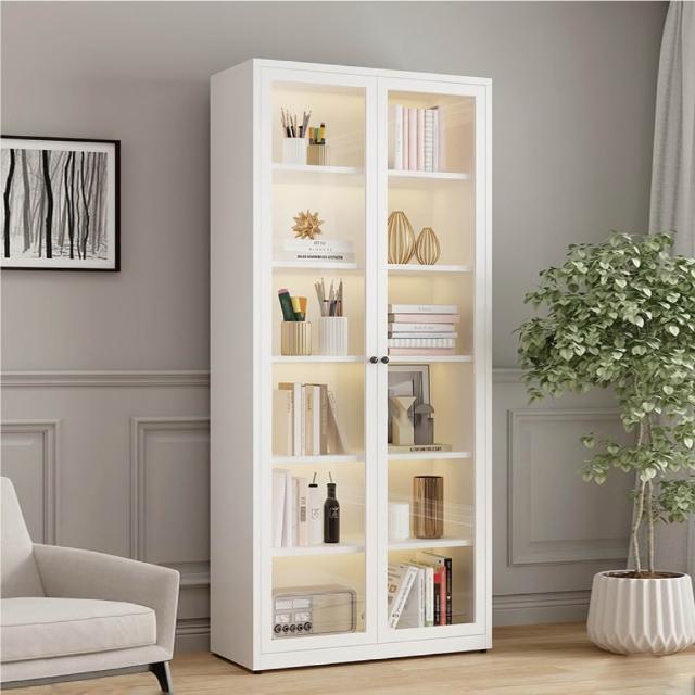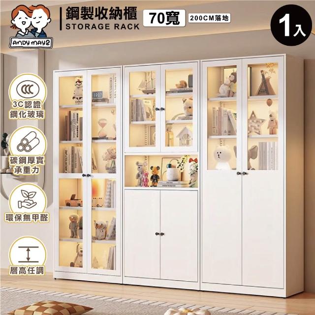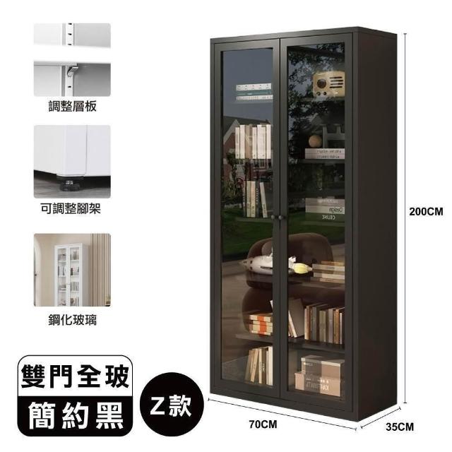 ANDYMAY2落地雙門款_鋼鐵職人全碳鋼簡約耐重收納櫃 70X35X200CM(鋼化玻璃櫃門 展示櫃 書櫃 活動櫃 收納櫃 鐵櫃)