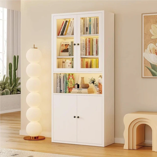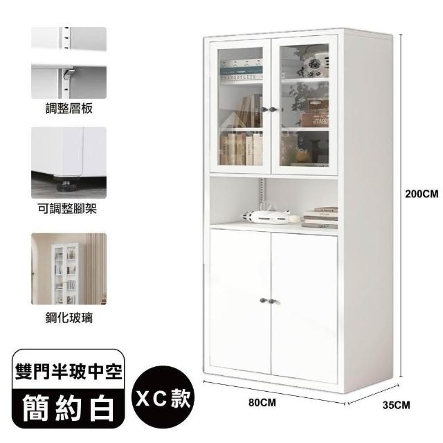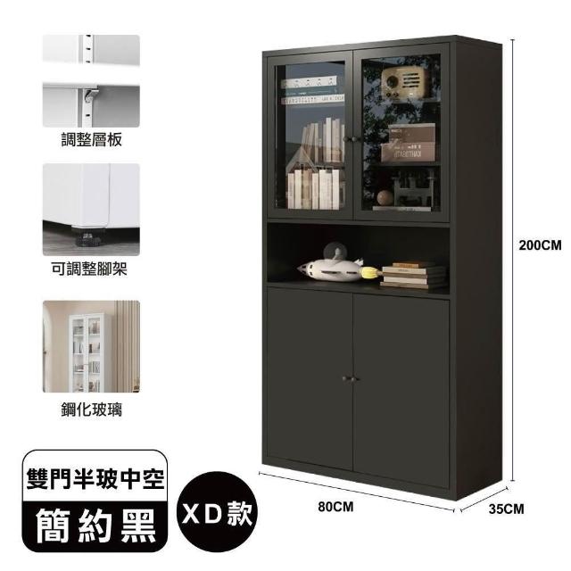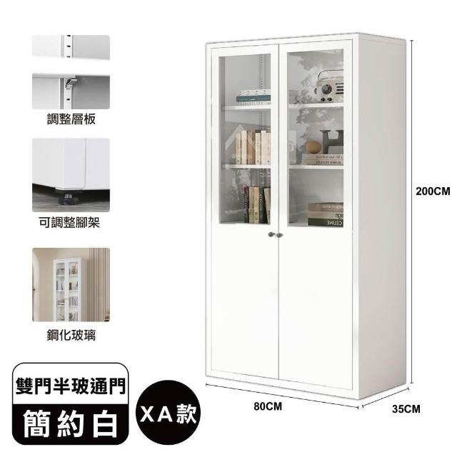 ANDYMAY2落地雙門款_鋼鐵職人全碳鋼簡約耐重收納櫃 80x35x200CM(鋼化玻璃櫃門 展示櫃 書櫃 活動櫃 收納櫃 鐵櫃)