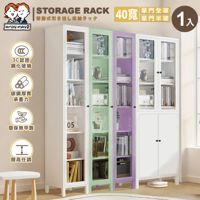 ANDYMAY2高腳單門款_鋼鐵職人全碳鋼簡約耐重收納櫃 40X35X180CM(鋼化玻璃櫃門 展示櫃 書櫃 活動櫃 收納櫃 鐵櫃)