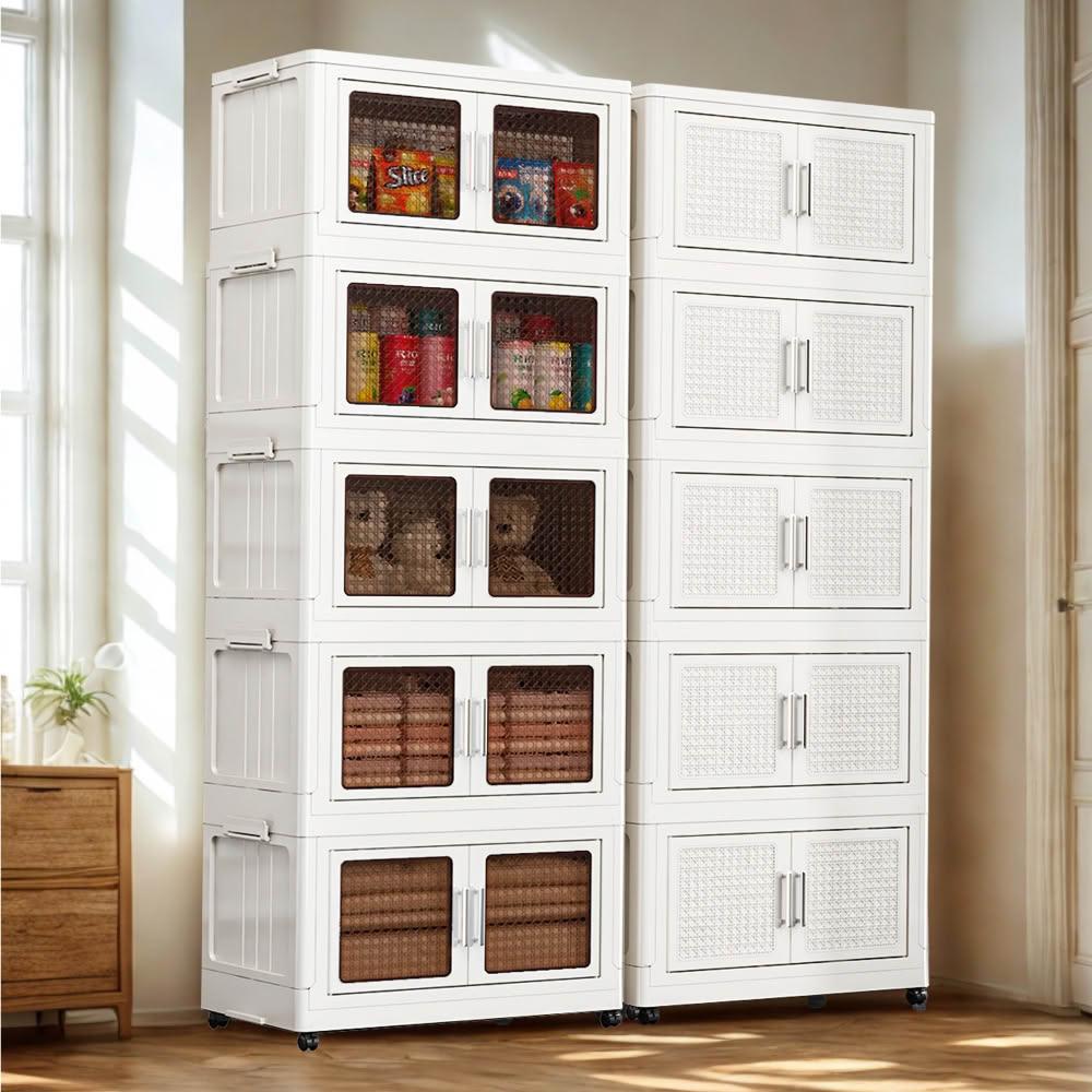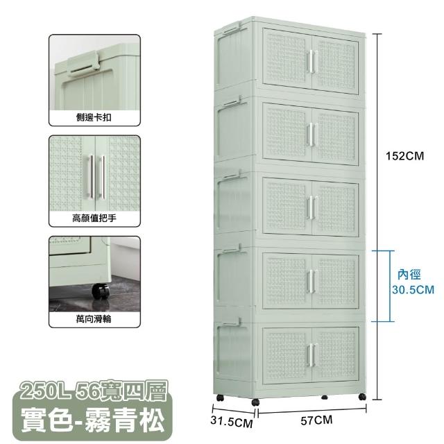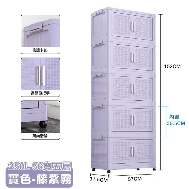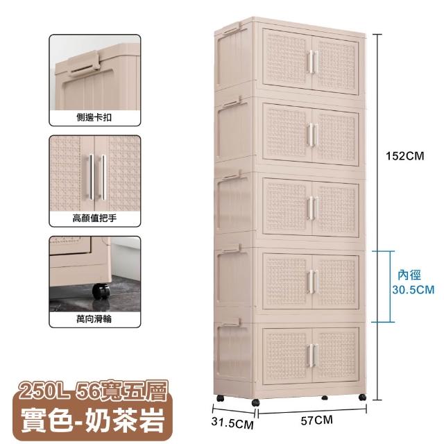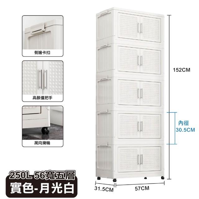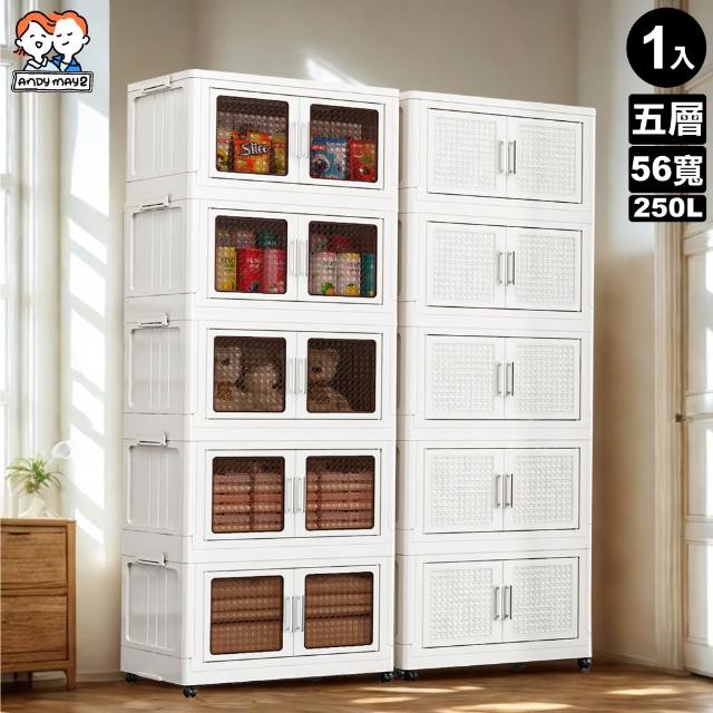 ANDYMAY256寬 250L 阪藤加深款折疊收納櫃/收納箱-五層(衣櫃 置物櫃 收納架 五層櫃 摺疊收納 雙開門)