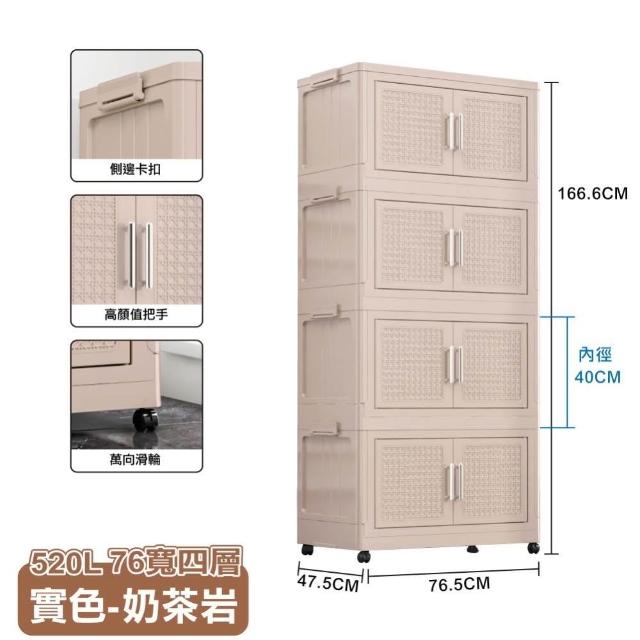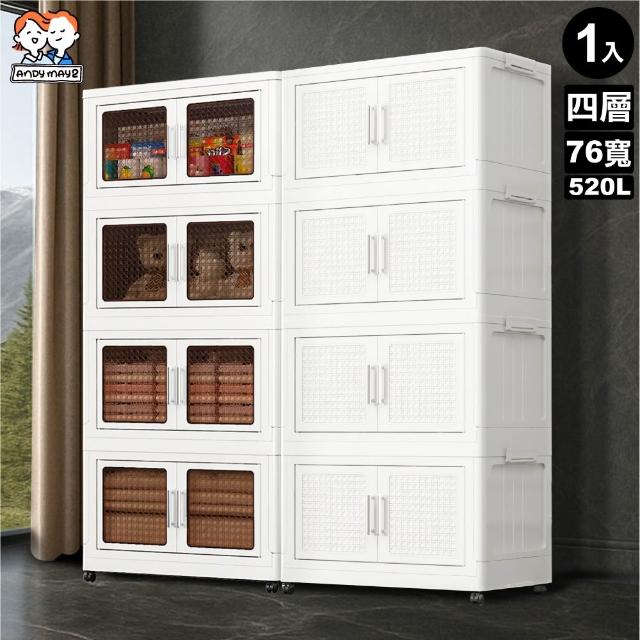 ANDYMAY276寬 520L 阪藤加深款折疊收納櫃/收納箱-四層(衣櫃 置物櫃 收納架 四層櫃 摺疊收納 雙開門)