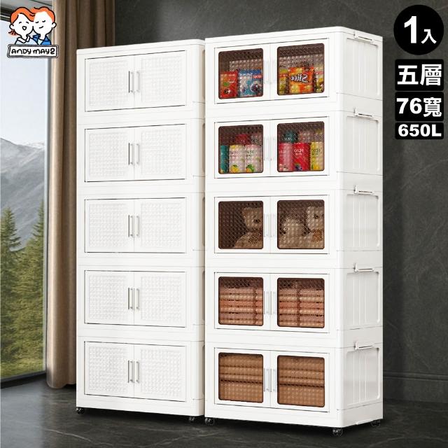 ANDYMAY276寬 650L 阪藤加深款折疊收納櫃/收納箱-五層(衣櫃 置物櫃 收納架 五層櫃 摺疊收納 雙開門)