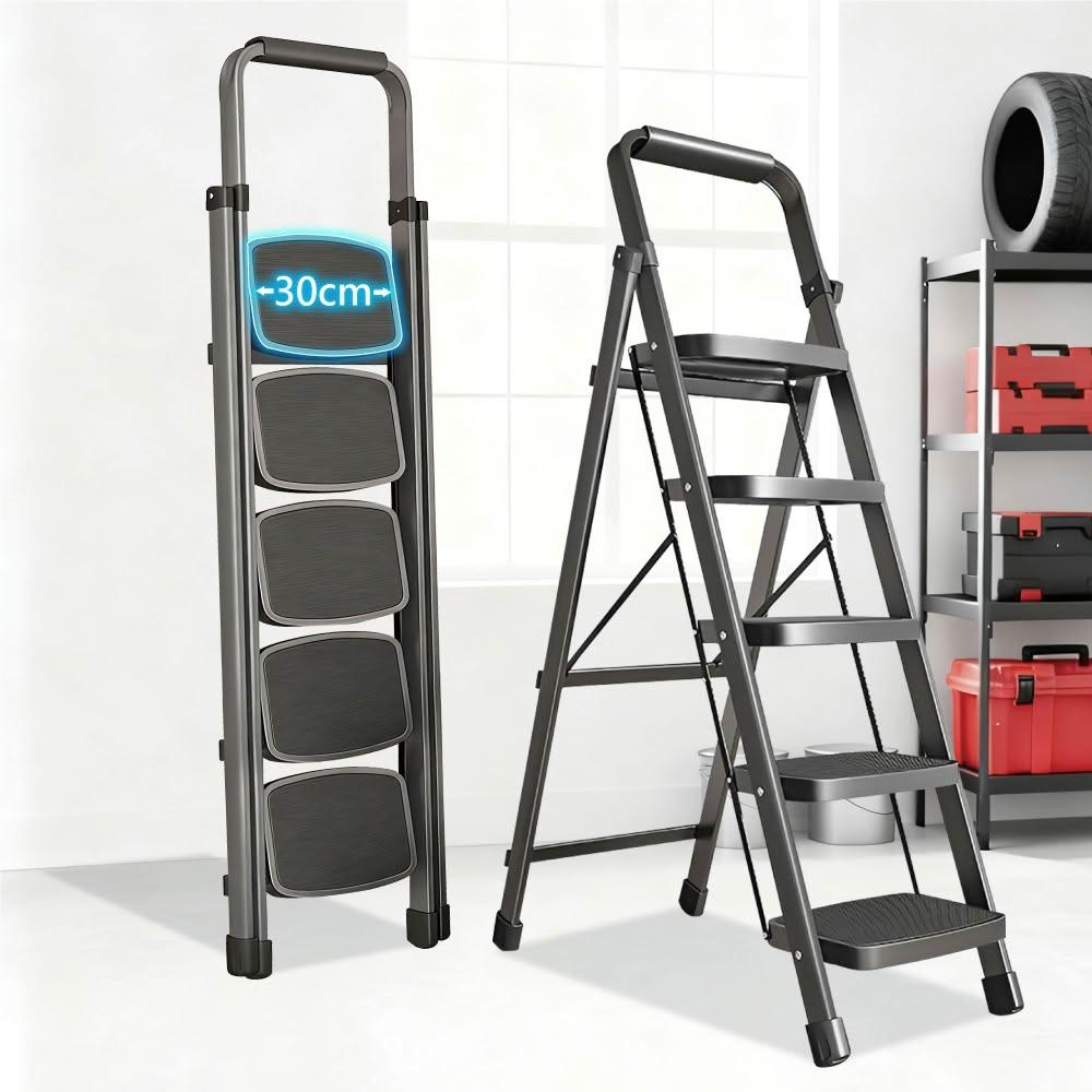ANDYMAY2穩步安全扶手折疊人字梯-四階/五階(規格任選)(折疊梯子 家用梯 A字梯 五層梯 梯子 工作梯 交換禮物)